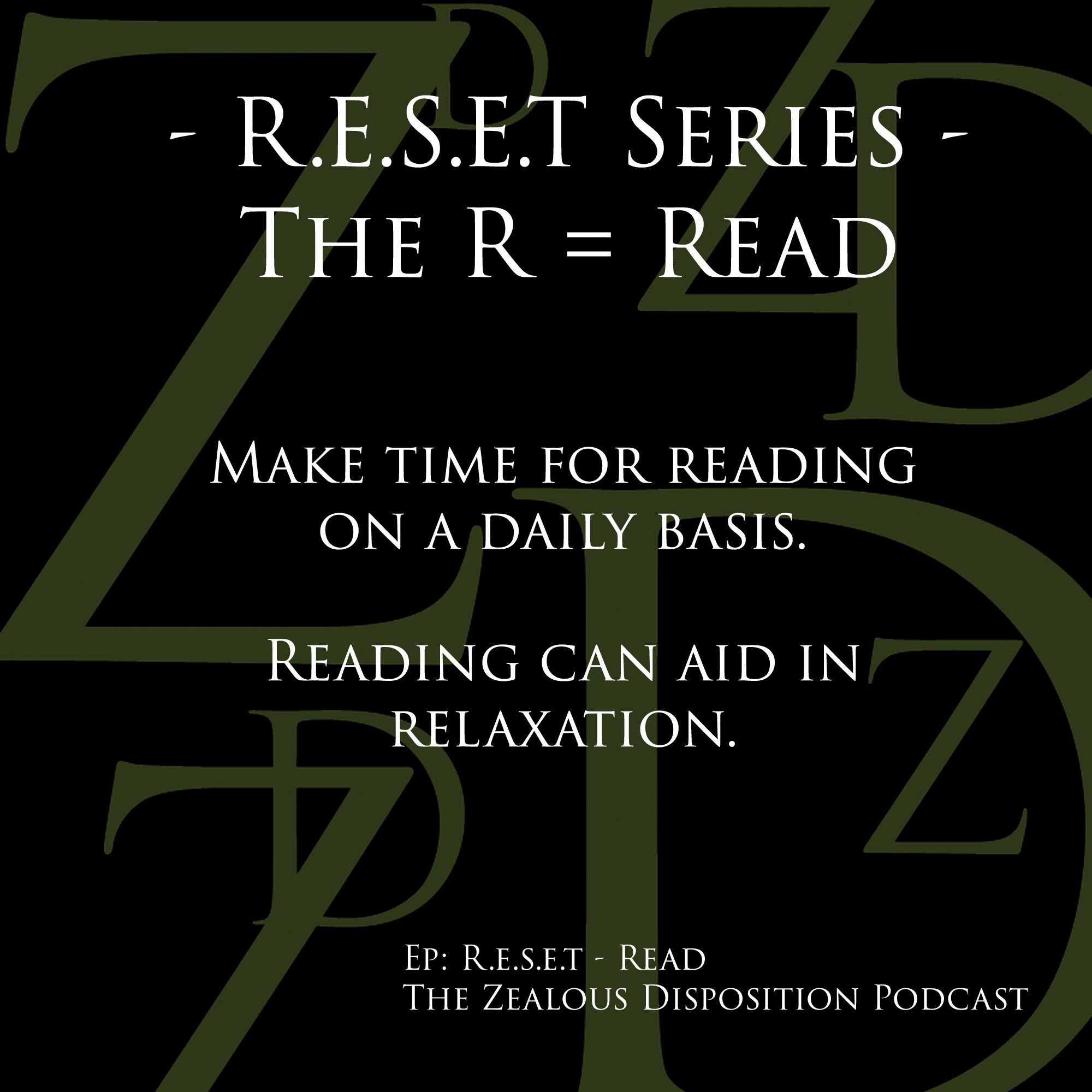 Hello, hello, hello. Thank you for tuning in to another episode of The Zealous Disposition Podcast. Today I will be sharing what the R in R.E.S.E.T stands for. The R stands for Read or Reading.